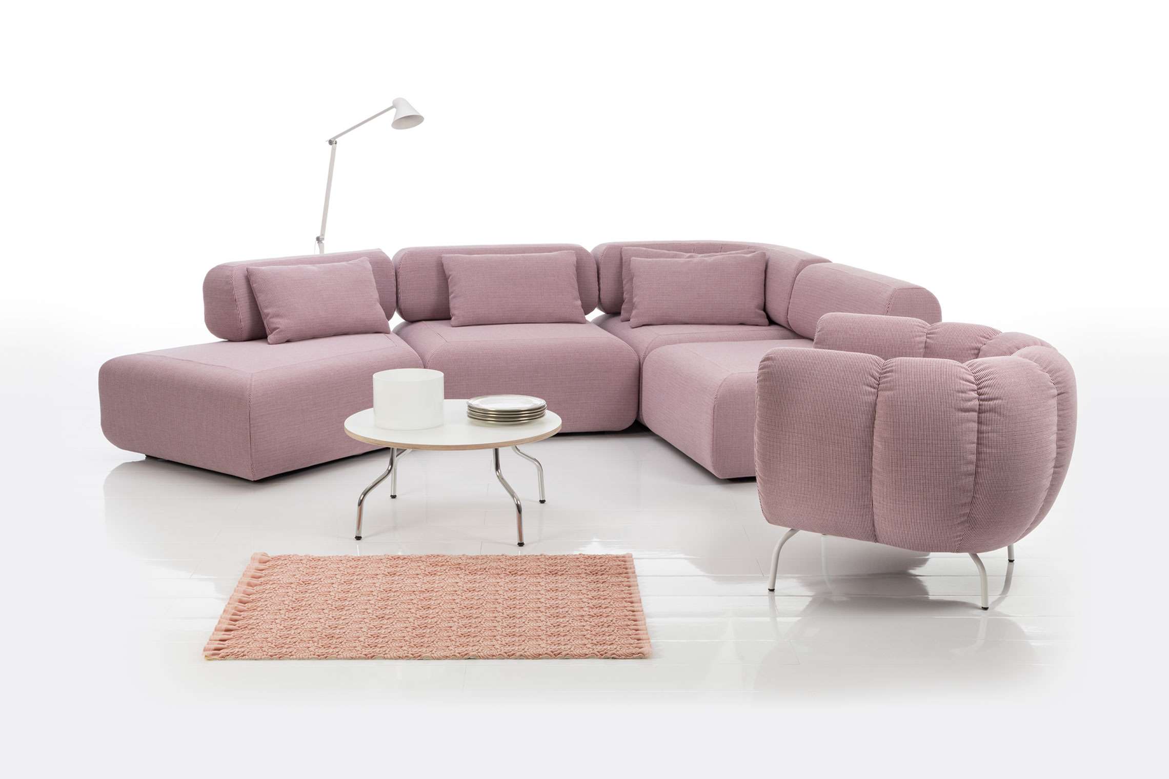 Die Sofas werden in regulärer Größe angeboten. Passende Hocker, Openends oder Sessel ermöglichen es, ein Sofa jederzeit zu ergänzen und mehr Platz zu schaffen. Dafür werden auch Elemente in Übertiefe und Überbreite sowie ein Element in Form eines rechtwinkligen Trapezes angeboten.