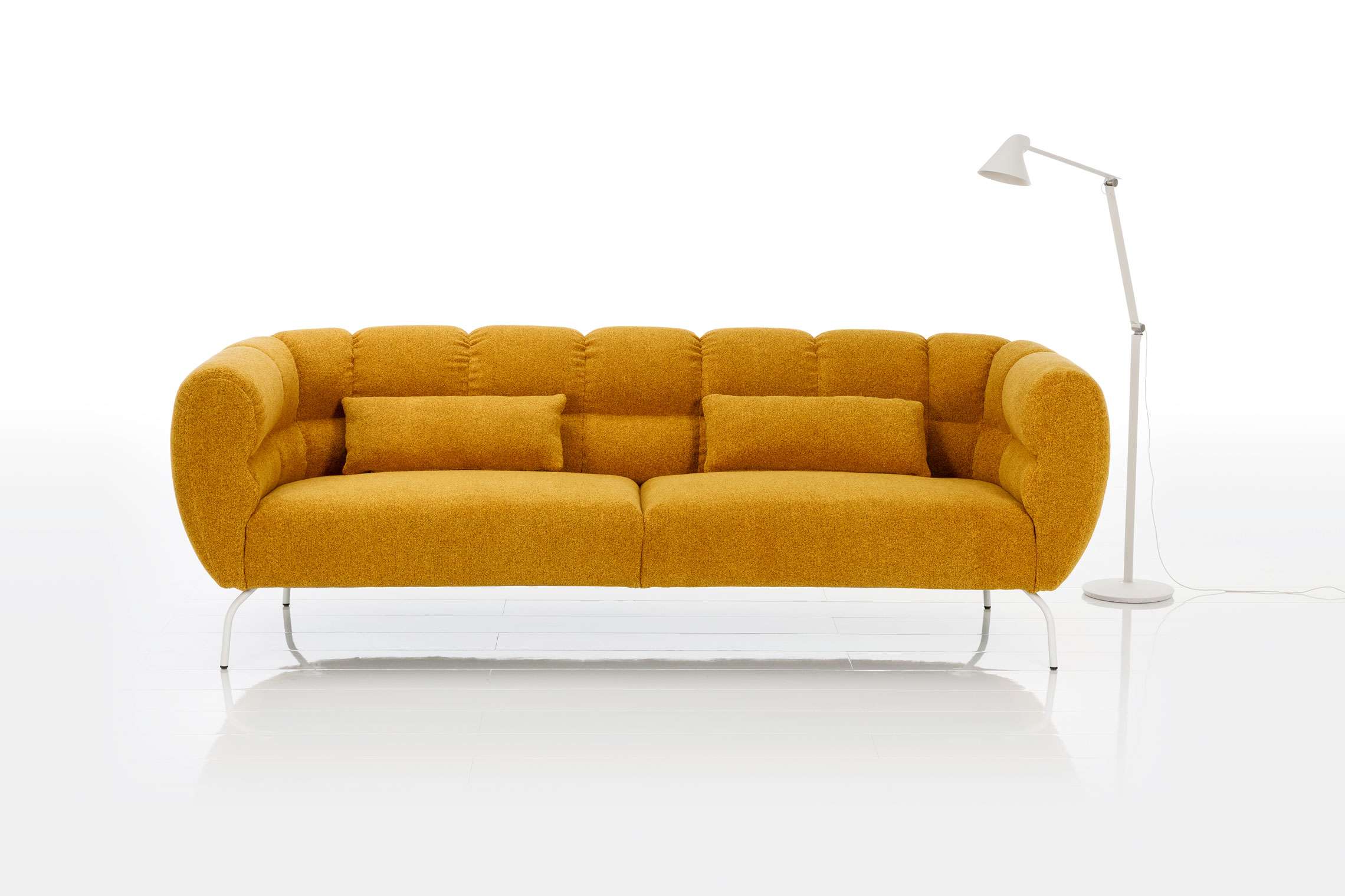 Die Sofas magnolia –angeboten als zwei- oder dreisitzige Sofas – lassen sich zusammen mit den Sesseln zu luftigen Ensembles arrangieren oder auch als beschwingte Solisten frei im Raum aufstellen. Mit den Farben und Texturen der Bezüge können dabei wunderbare Akzente gesetzt werden – so etwa von klassisch und elegant in Leder bis hin zu duftigem, blütengleichem Weiß oder Rosé. Eine weitere Option ist die Bildung einer langen Sofareihe aus zwei – kleineren oder größeren – Anstellsofas.