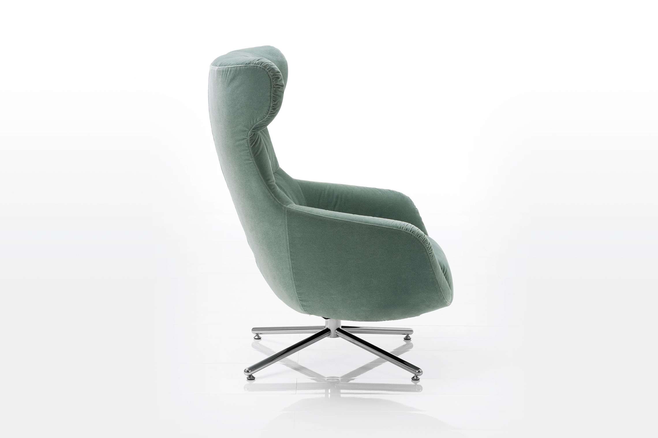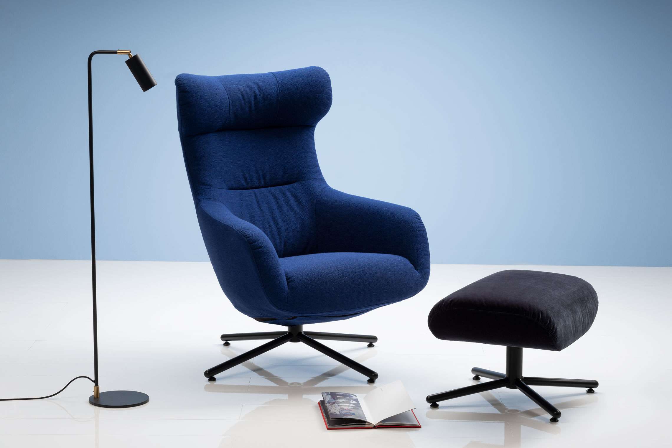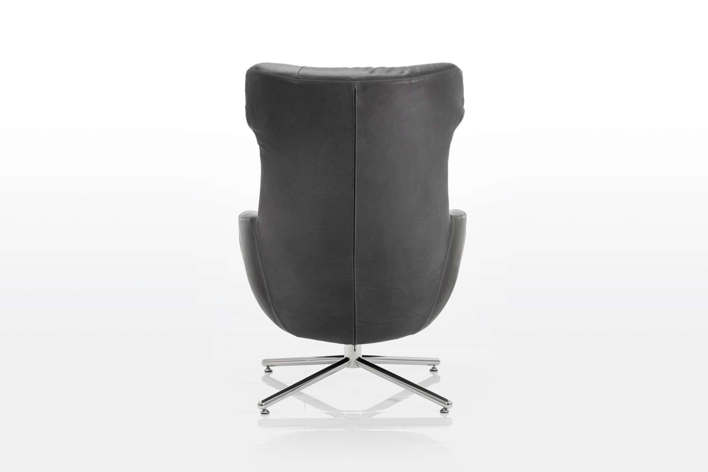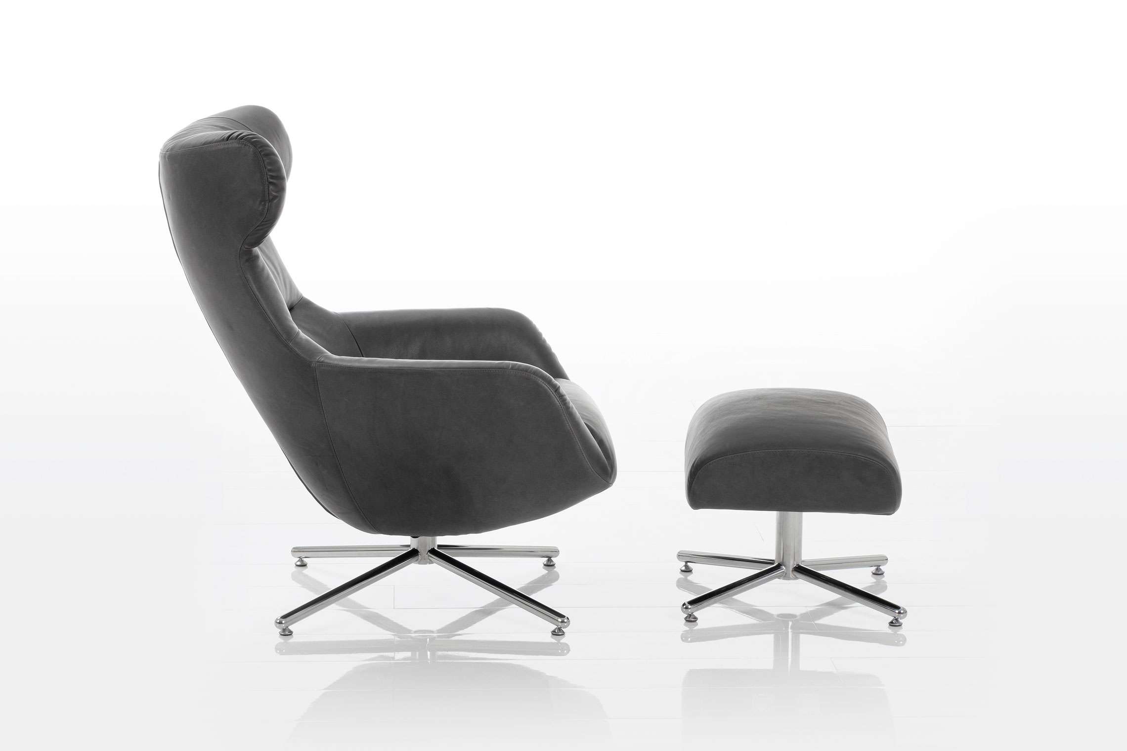 Ein guter Platz, um Entscheidungen zu treffen: Eine fließende Linienführung, eine taillierte Kontur sowie feine Verarbeitungsdetails geben dem sehr bequemen und eleganten Loungesessel victor eine gediegene Anmutung. Der grazile Kreuzfuß wird in Chrom oder schwarz pulverbeschichtet angeboten. Eine zusätzliche Neigungsverstellung und ein optionaler Hocker erhöhen die Entspannung. Individuell zu konfigurieren in exklusivem Leder oder Textil. Die Bezüge sind abziehbar und erneuerbar.